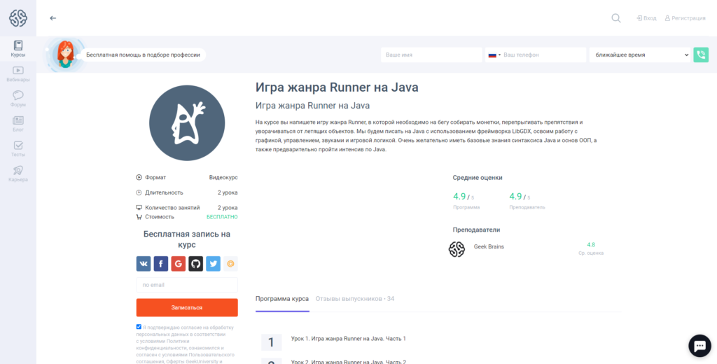 Программа: создание игры Runner на языке Java, использование фреймворка LibGDX. Получение знаний о графике, звуке, управлении и логике игрового процесса. Курс ориентирован на слушателей с определённым уровнем подготовки, которые имеют знания в области ООП и синтаксиса языка.