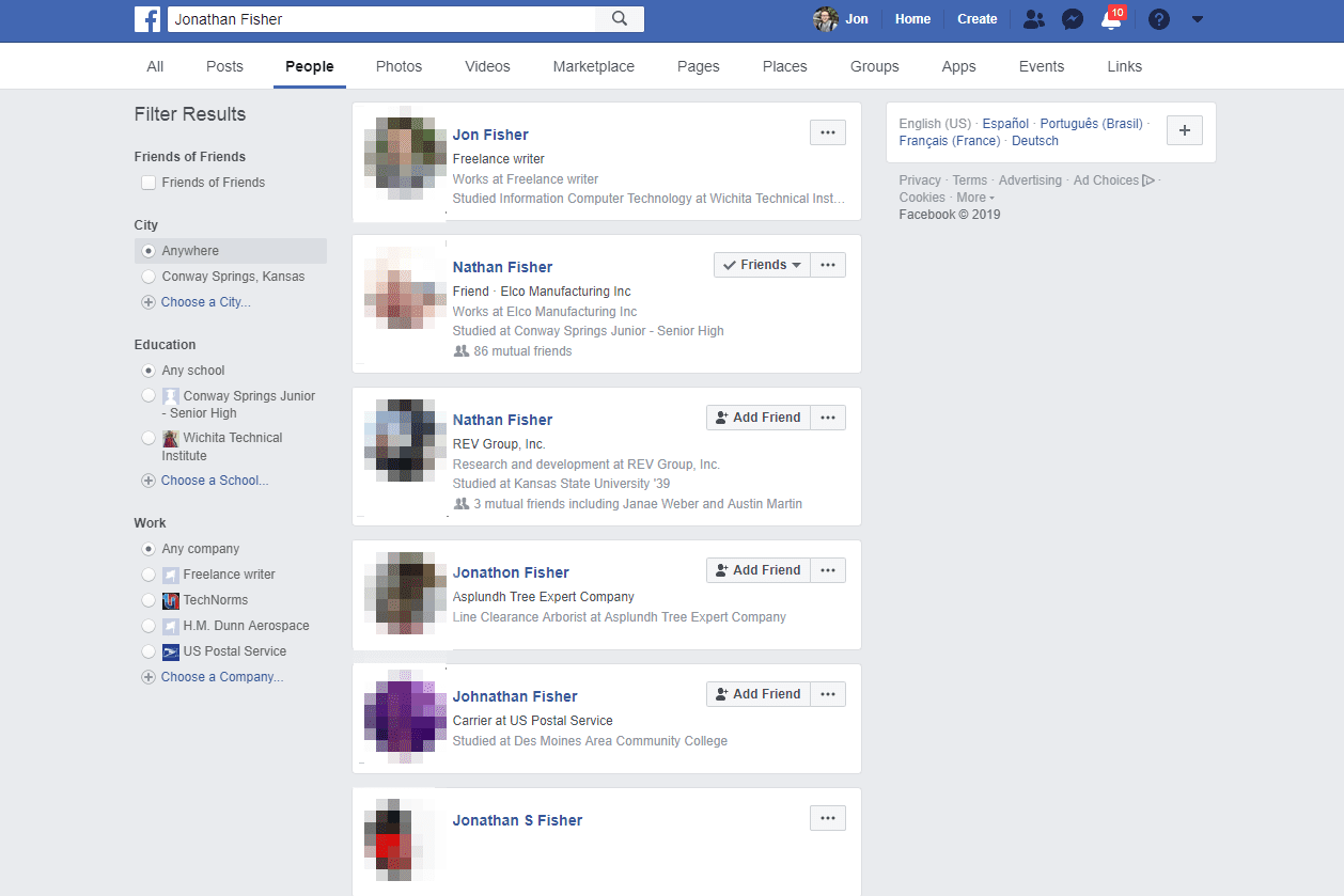 Являясь одной из крупнейших в мире социальных сетей, в которую ежедневно заходят сотни миллионов людей, имеет смысл использовать инструмент поиска Facebook как невероятно полезный способ поиска людей в Интернете. Вы можете выполнить поиск по имени и указать город, школу и / или сотрудника.