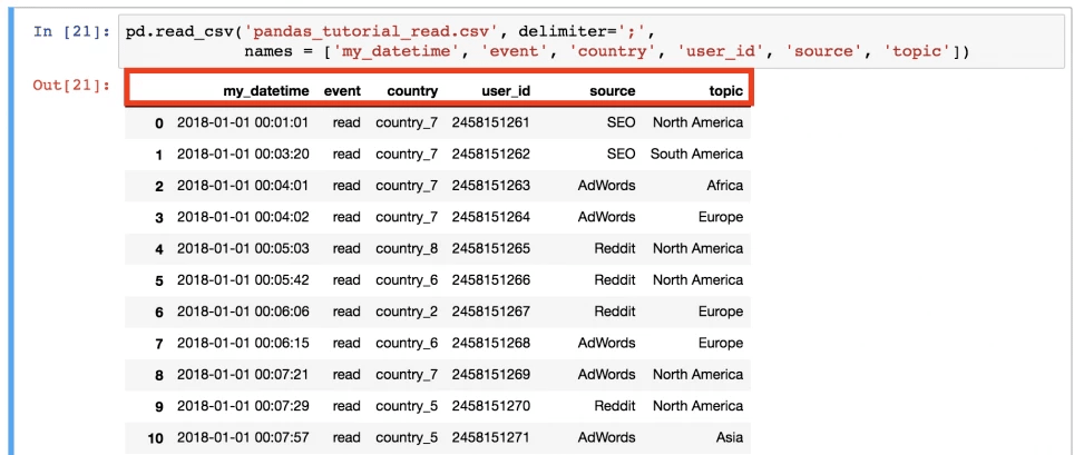 pd.read_csv( 'https://pythonru.com/downloads/pandas_tutorial_read.csv', delimiter=';', names= )