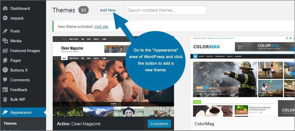 Найдите тему, которая вам нравится, установите и активируйте ее. Если не уверены, подходит ли она, нажмите на кнопку «Предварительный просмотр».