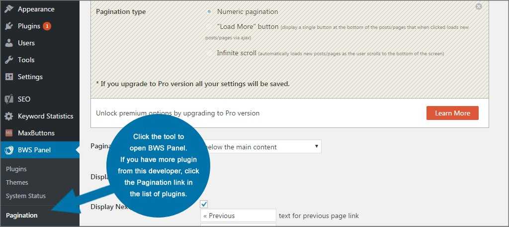 Найдите плагин «Pagination by BestWebSoft». Установите и активируйте его.