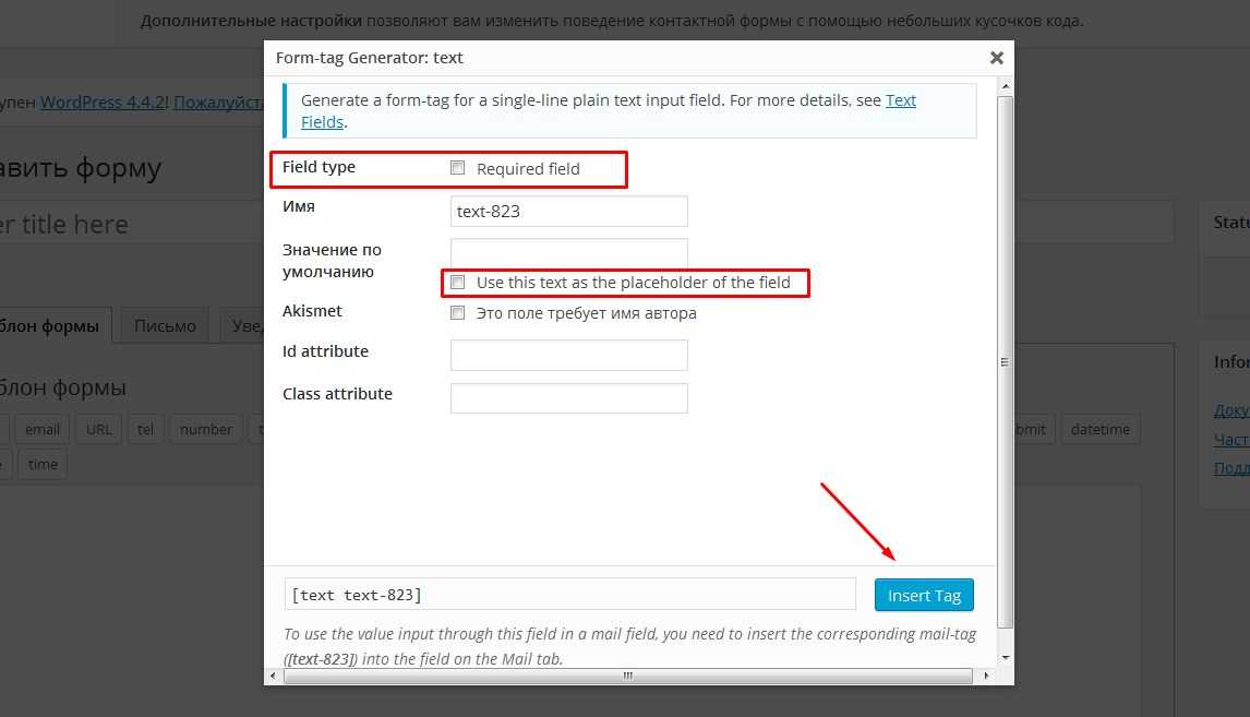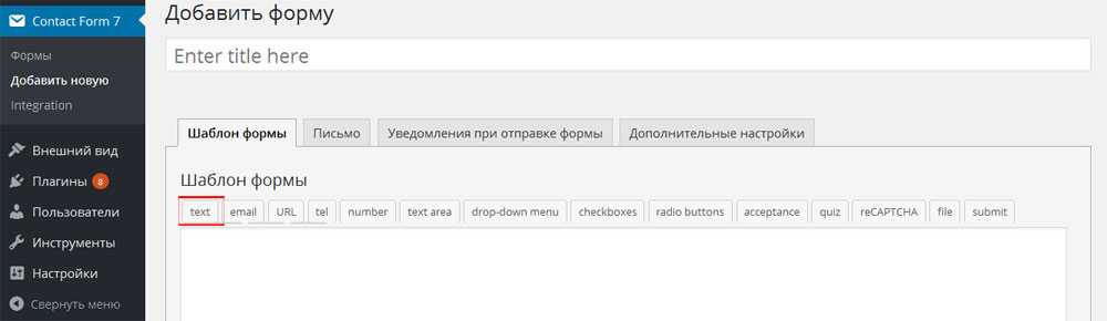 Добавление и настройка текстового поля в Contact Form 7