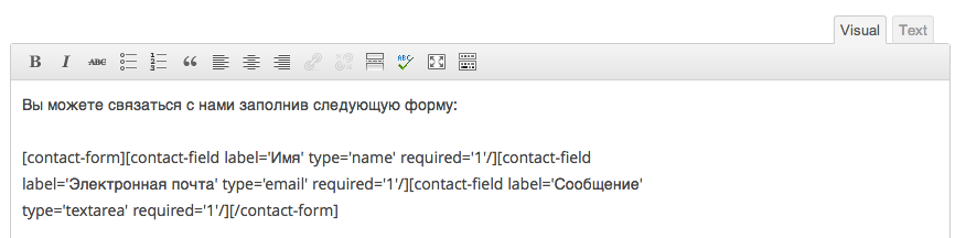 Чтобы добавить новую форму на страницу, щёлкните по кнопке «Add this form to my post» и Jetpack добавит код для вашей формы в редактор.