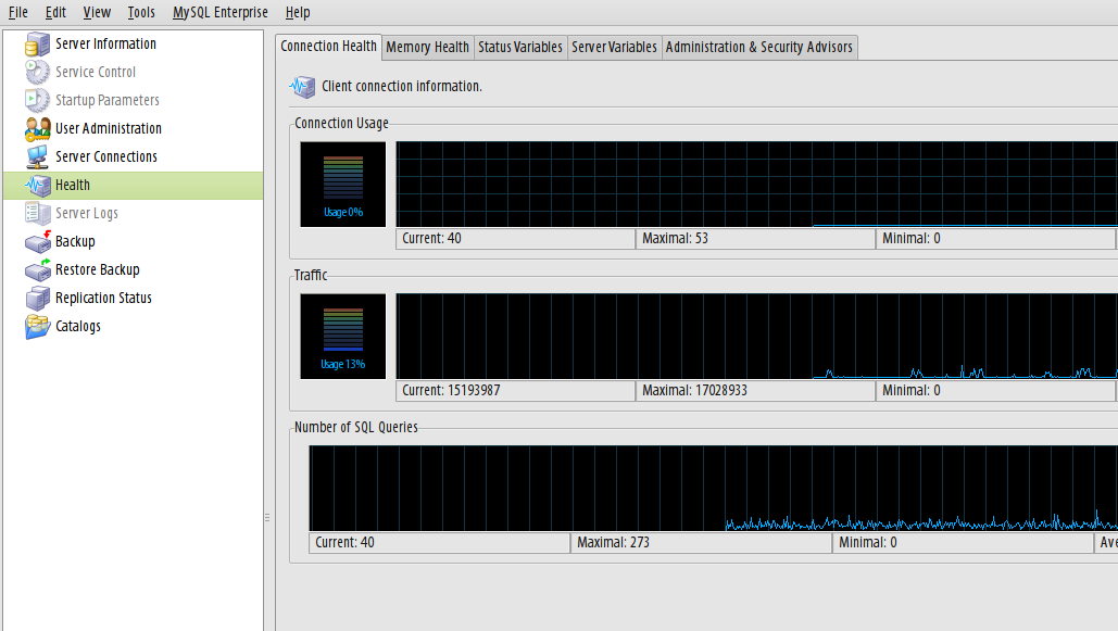 MySQL Administrator — это кросс-платформенный инструмент, созданный MySQL AB (теперь Sun Microsystems) для управления локальными и удалёнными базами данных. Его можно использовать для контроля их «здоровья» (кол-во запросов и соединений, использование памяти и др.), управлять пользователями и резервными копиями, изменять переменные MySQL сервера.