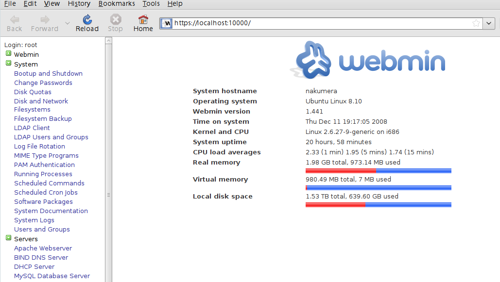 Webmin — это панель для администрирования сервера с веб-интерфейсом. Она не включена в Ubuntu из-за того, как взаимодействует с сервером (не отвечает политике Debian). Но всё же это очень полезная программа.