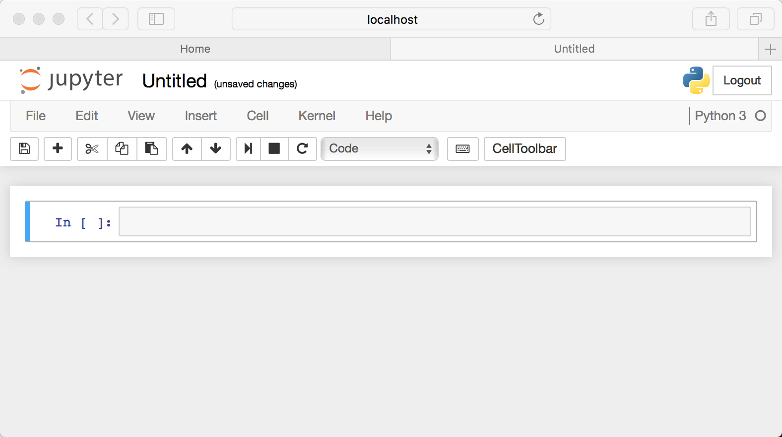 Кнопкой Launch запустим «тетрадку» Jupyter, которая откроет ваш дефолтный браузер. После этого ваше рабочее пространство будет выглядеть так: