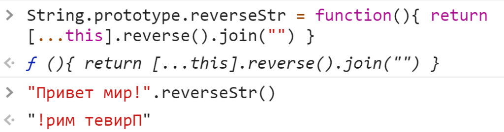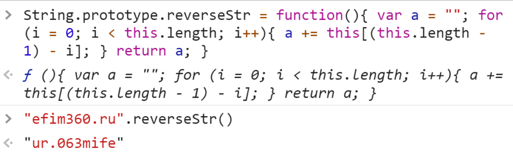 Расширили методы для строк — перевернули строку циклом for — JavaScript