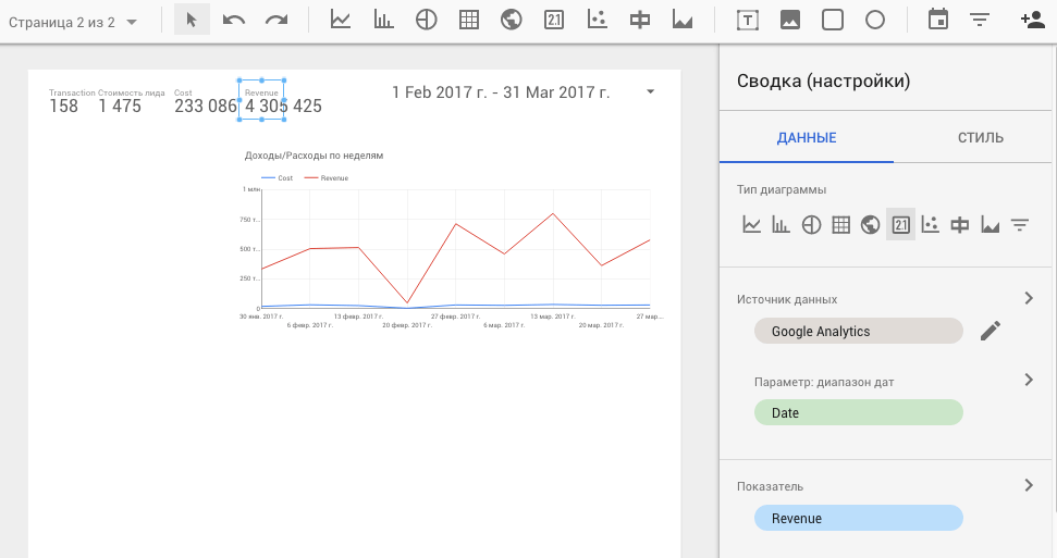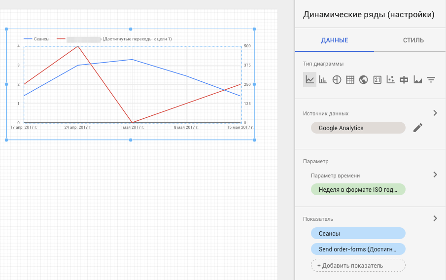 Так вот в Data Studio целесообразно строить отчеты только по основным показателям.