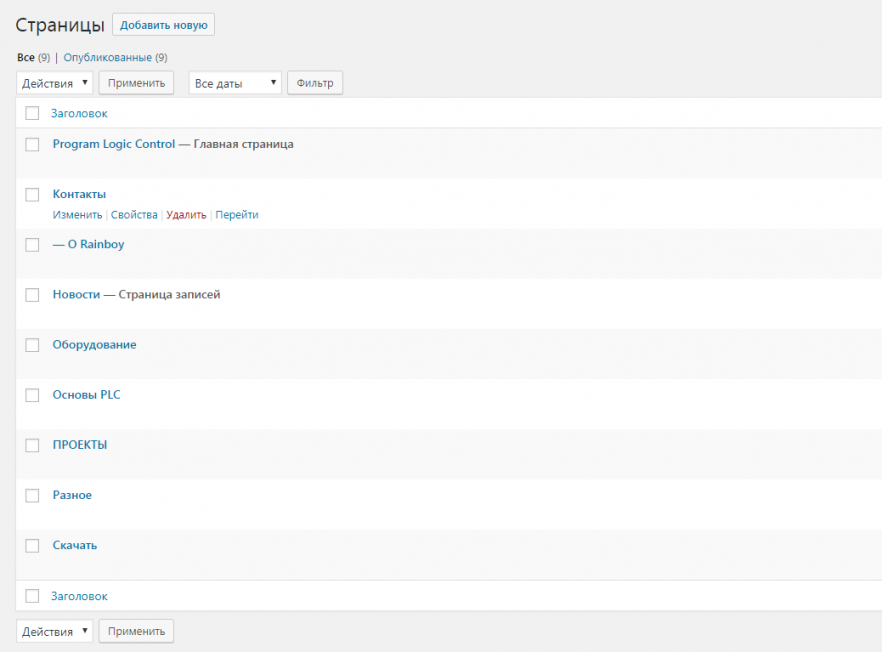 Откройте Страницы (Pages) -> Все страницы (All Pages)