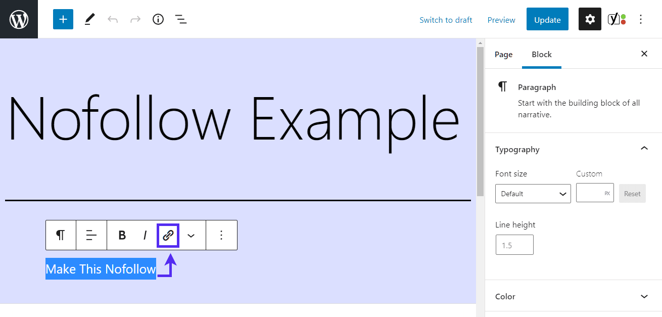 Как добавлять ссылки Nofollow в WordPress (Gutenberg)