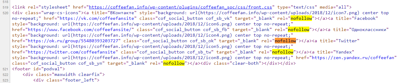 Обратите внимание, иногда комбинация rel=»external nofollow» может выглядеть иначе (rel=»nofollow», rel=»nofollow external»). В этом случае, разместите в теле функции тот код, который используется у вас в блоге