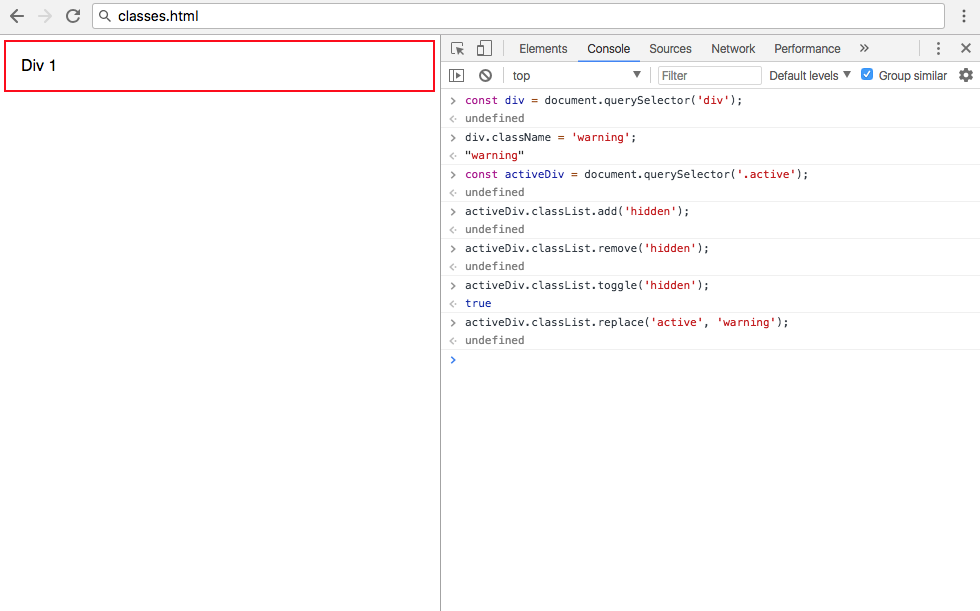 Другой способ изменения классов — это свойство , которое имеет несколько полезных методов. Эти методы аналогичны методами , и в jQuery.