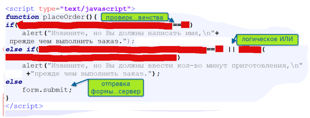 <form> Имя: <input type="text" id="name"><br> Кол-во пончиков: <input type="text" id="donuts"><br> Минут: <input type="text" id="minutes"><br> Подытог: <input type="text" id="poditog"><br> Налог: <input type="text" id="tax"><br> Итог:<input type="text" id="itog"><br> <input type="submit" value="заказать" onclick="placeOrder();"> <form> <script type="text/javascript"> ... <script> |