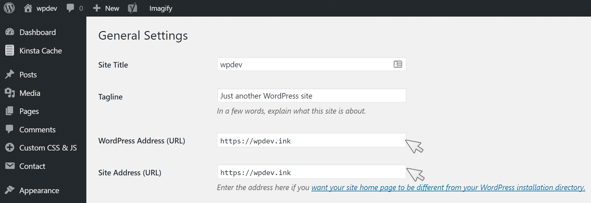 Оба URL-адреса должны совпадать, если вы не размещаете WordPress в отдельном каталоге. Помните, что после нажатия кнопки «Сохранить изменения» панель администрирования будет доступна только по новому URL-адресу.