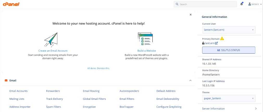 cPanel — это панель управления, которая позволяет вам выполнять различные задачи на вашем веб-сайте. Обычно предоставляется веб-хостингами и устанавливается по умолчанию в серверной части. Инструменты включают установку WordPress, настройку учетных записей электронной почты, создание поддоменов, установку сертификатов SSL и множество других важных вещей.
