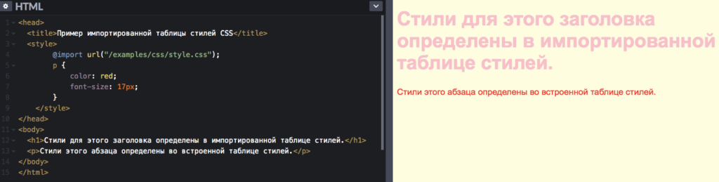 <h1>Стили для этого заголовка определены в импортированной таблице стилей.</h1>
