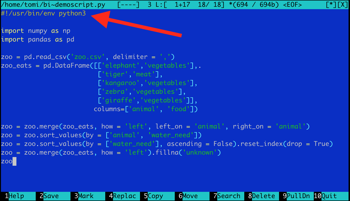 Shebang — это строка кода, которую нужно поместить в самом начале скрипта. Его задача – сообщить ОС, что у вас есть исполняемый файл Python3.