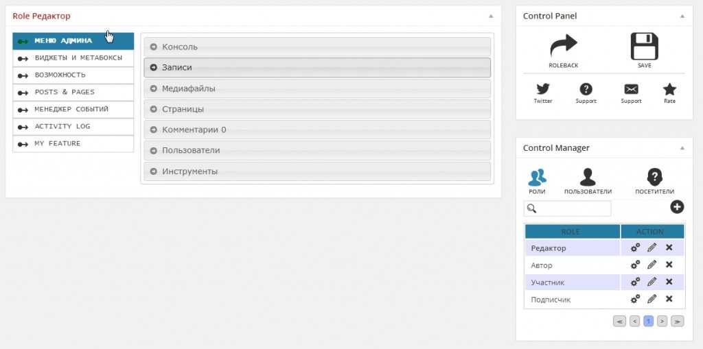 - Фильтр метабоксы и виджеты — предопределить имеющиеся метабоксы или виджеты для любого пользователя, роли или посетителя.