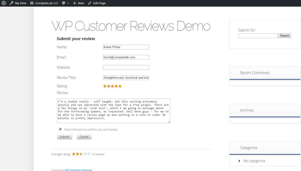 WP Customer Review предназначен для того, чтобы посетители могли делиться фидбэком непосредственно на самом ресурсе. Кроме того он даёт возможность администраторам сайта добавлять комментарии в ручном режиме.