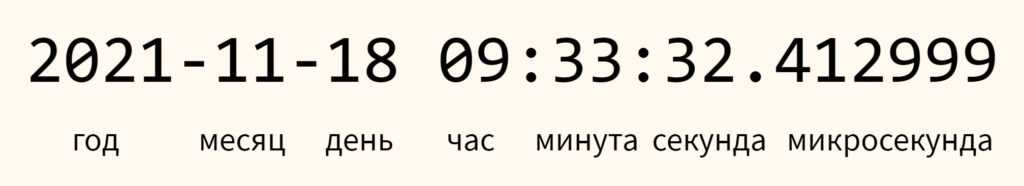 У каждой переменной типа данных можно вызвать метод (англ. now «сейчас»). Он вернёт текущий момент времени по с эталонной точностью до микросекунд.