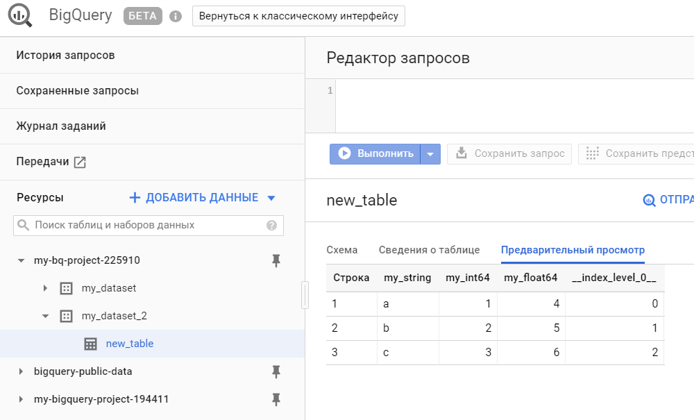 Проверим, что наш датафрейм загрузился в BigQuery: