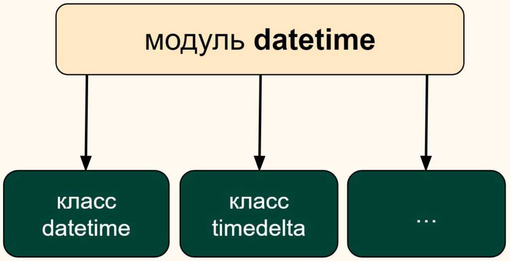 Первая особенность, про которую стоит сказать, datetime — это не только название модуля, но и название одного из классов внутри этого модуля. Помимо класса datetime, нас будет интересовать ещё один класс — timedelta.