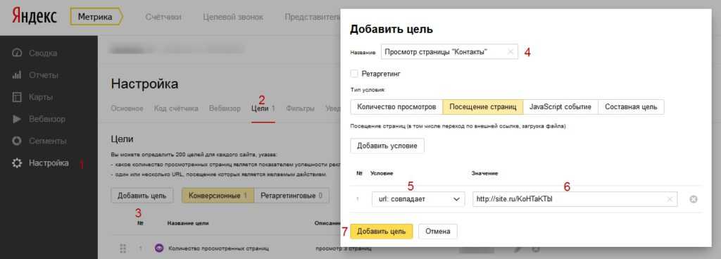 - Придумываем понятное название, например: «Просмотр страницы Контакты»