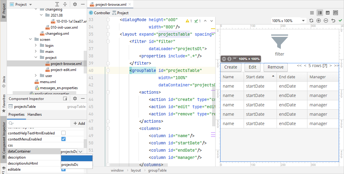 В Jmix Studio есть генератор пользовательского интерфейса. С его помощью мы создадим простые, но полезные экраны: