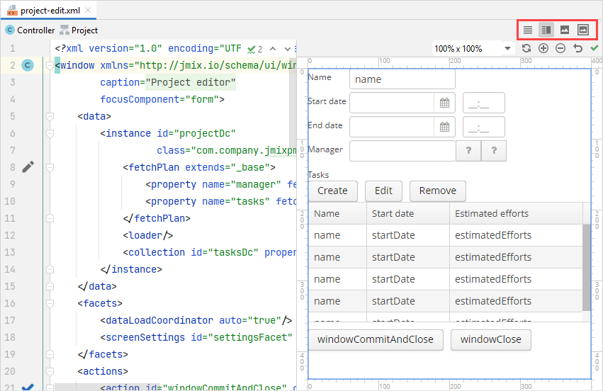 XML-дескрипторы вы можете найти под узлом Data Model в окне инструментов Jmix.