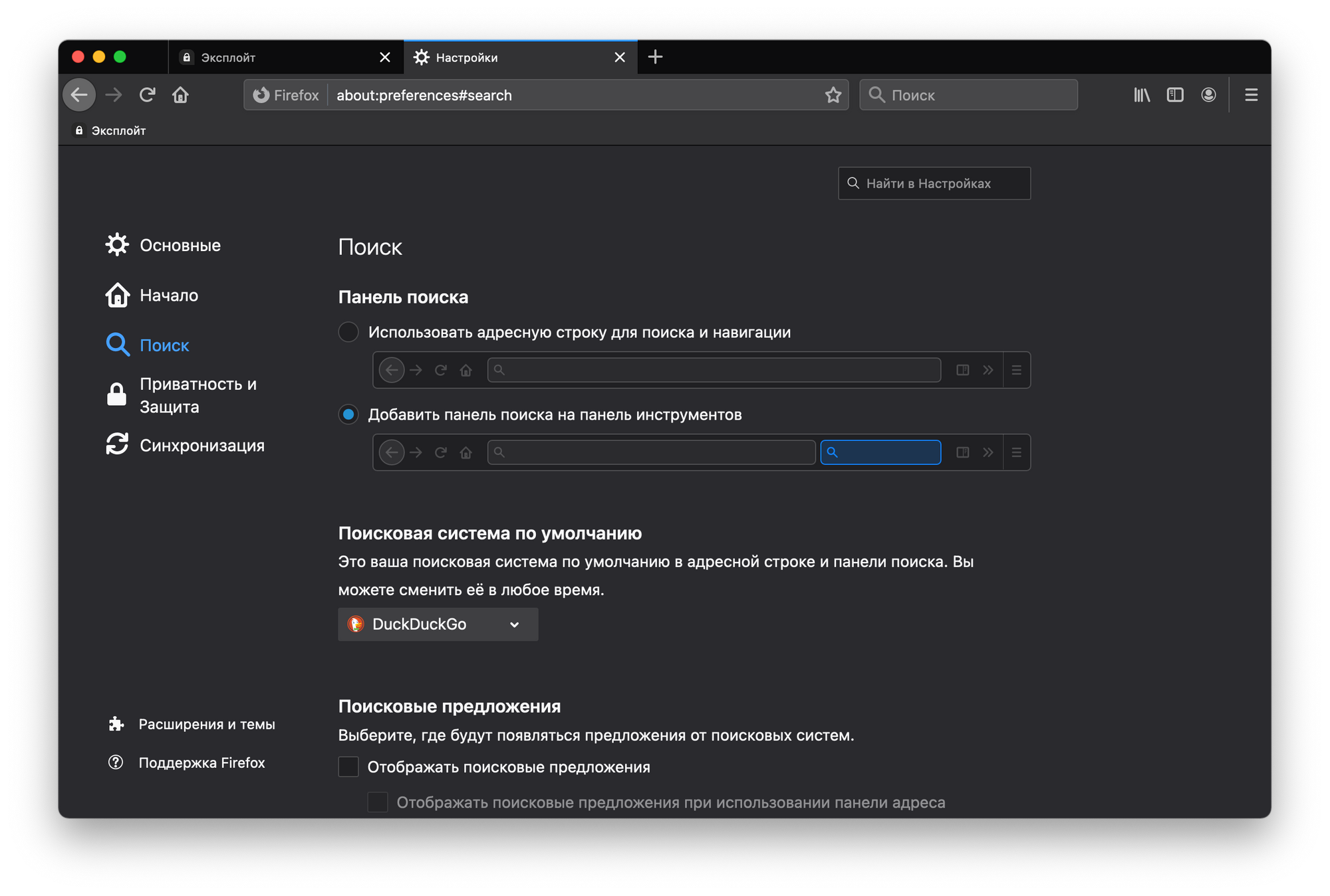 Следует сделать DuckDuckGo поисковой системой по умолчанию вместо Google и снять флажок у параметра «Отображать поисковые предложения». Это еще больше сократит количество данных, известных о вас браузеру.