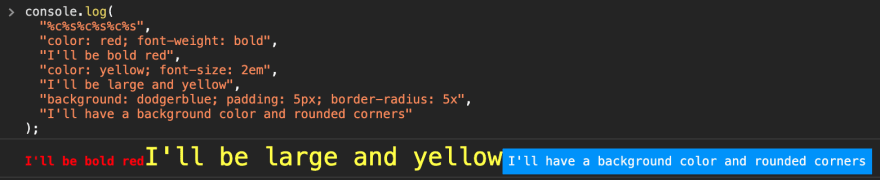 Это отлично работает, если вы переходите кэто строка или число. Как только у вас есть массив или объект, все становится слишком сложно для, и вы можете использоватьКонсольный API. Начиная с: