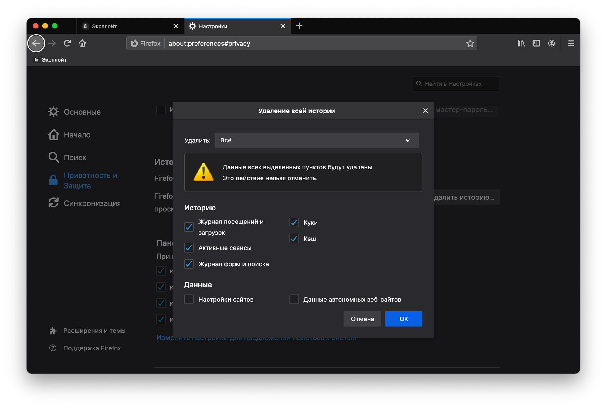 Затем установите флажок у параметра «Всегда работать в режиме приватного просмотра». После этого потребуется перезагрузка браузера. С этого момента Firefox больше не будет сохранять историю посещенных вами страниц и загрузок, а также данные для автозаполнения строк. Таким образом, вы сможете удалить всю личную информацию, которая могла бы быть отслежена и проанализирована другими компаниями, такими как Amazon, Facebook, Google.