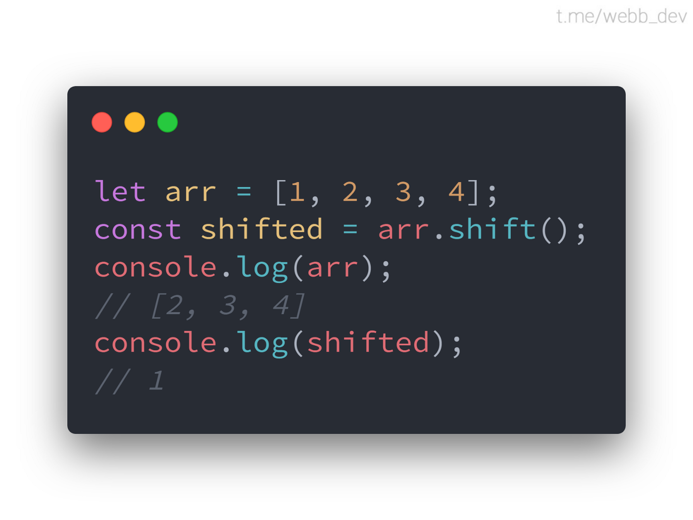 Метод удаляет из массива первый элемент и возвращает его. Он тоже модифицирует массив, для которого его вызывают.