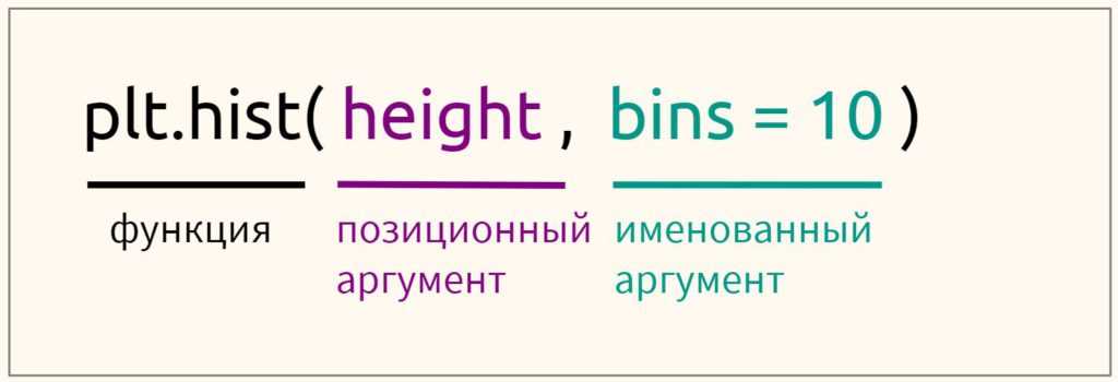 bins=10), и будет исполнен тот код, который заложили в нее создатели библиотеки Matplotlib.