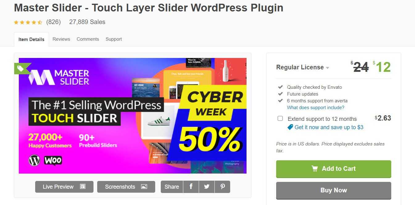 Что за Codecanyon? Это сайт-сборник платных дополнений для сайтов. Цены не кусаются и находятся в пределах от нескольких долларов до полутора десятков долларов. Разработчики скриптов для Codecanyon прилагают к своим решениям подробную документацию — как по настройке, так и по установке jquery слайдеров на сайт. Есть скриншоты и видео — все это станет вам доступным после оплаты выбранного скрипта.