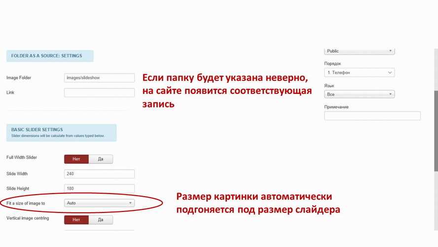 - Есть возможность растягивать слайдер на всю ширину или задавать фиксированные размеры