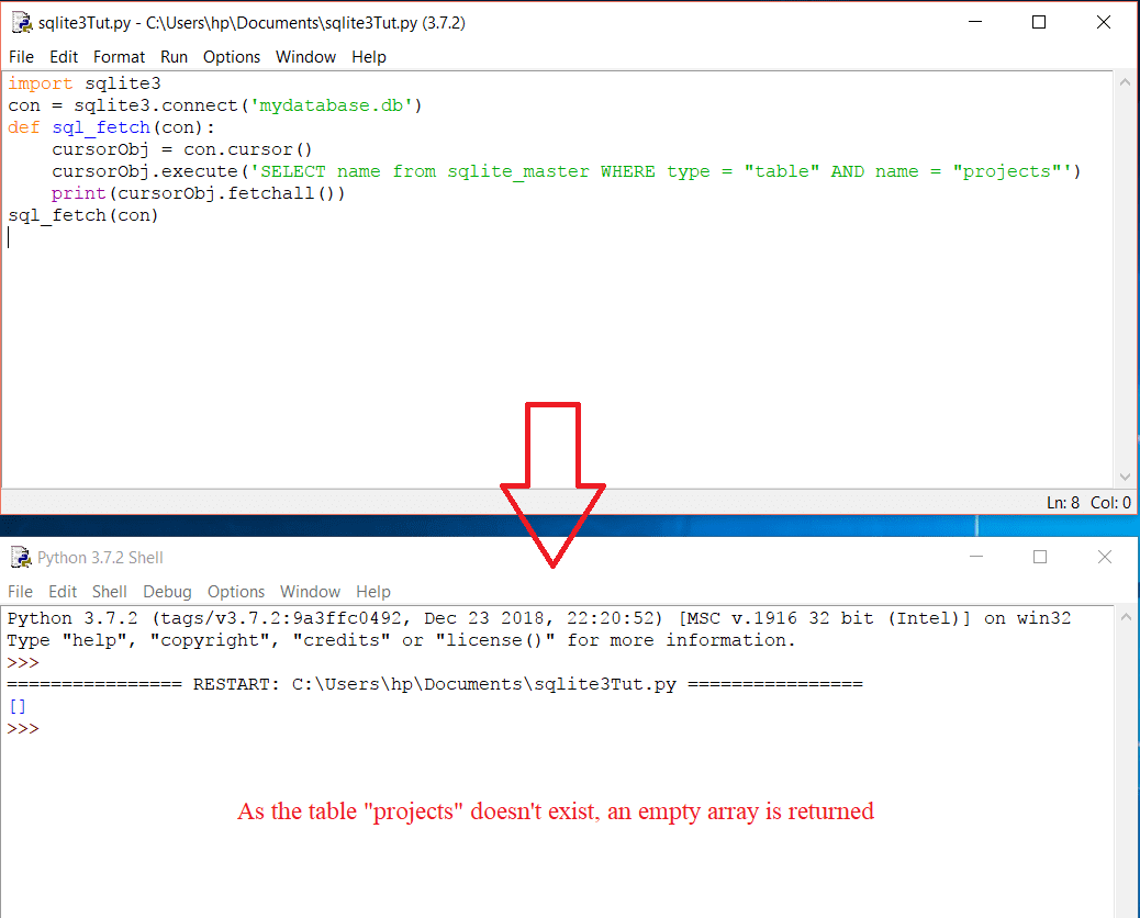 The select statement selects the required data from the database table, and if you want to fetch the selected data, the fetchall() method of the cursor object is used. We will demonstrate this in the next section.