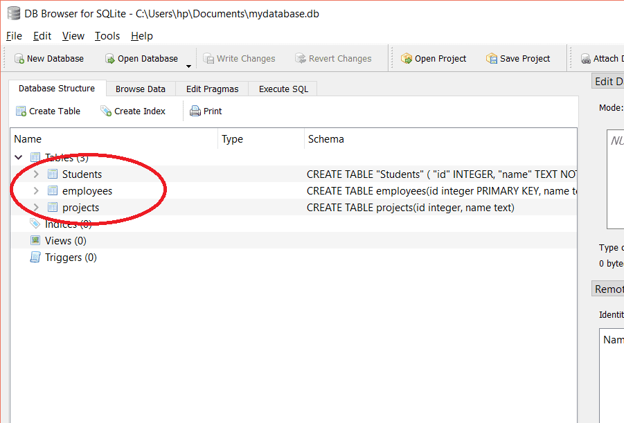 Заметка: если не указать название файла, sqlite3 создаст временную базу данных.