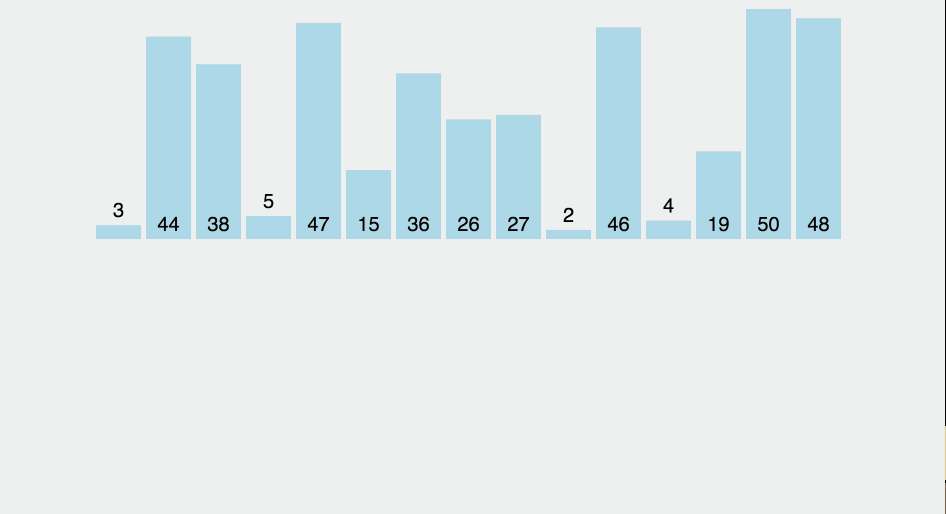 С каждой итерацией длина участка массива, который нужно пройти, уменьшается на единицу. Все это продолжается, пока вся коллекция не будет отсортирована по степени возрастания значений, от наименьшего к наибольшему.
