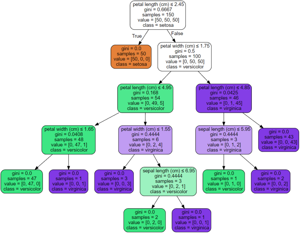 Используя набор данных Iris, мы можем построить дерево следующим образом:
