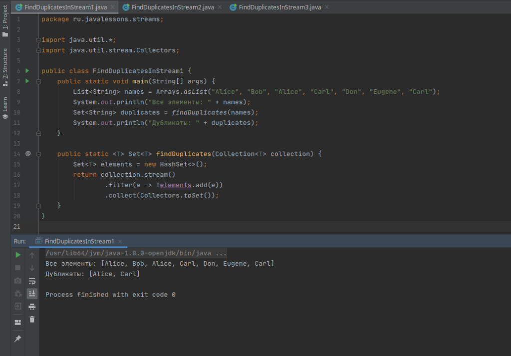 Java 8 distinct() example — Strings Values in List