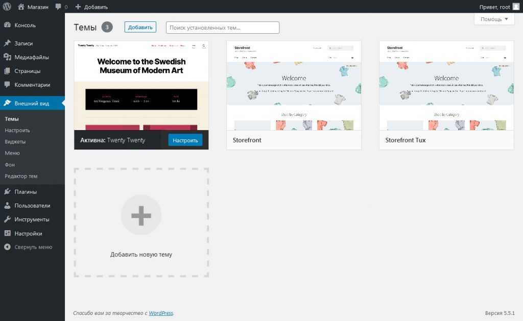 Раздел позволяет вам изменять внешний вид вашего сайта с помощью различных тем. Темы — это стили представления, которые полностью меняют внешний вид вашего сайта (не путайте с шаблонами!). Созданные разработчиками и пользователями, вам доступны тысячи тем на выбор. На экране внешнего вида вы увидите список установленных в настоящее время тем, включая тему WordPress Twenty Twenty. Чтобы быстро изменить тему, просто нажмите кнопку «Активировать» под одной из перечисленных тем, затем кликните на название своего сайта на верхней панели инструментов, чтобы посмотреть, как он теперь выглядит. Это так просто. Вернитесь к теме оформления и нажмите кнопку «Активировать» под темой WordPress Twenty Twenty, чтобы вернуть дизайн к тому, что было у вас. Для проверки кликните по названию своего сайта на панели инструментов, и вот все стало, как и было.