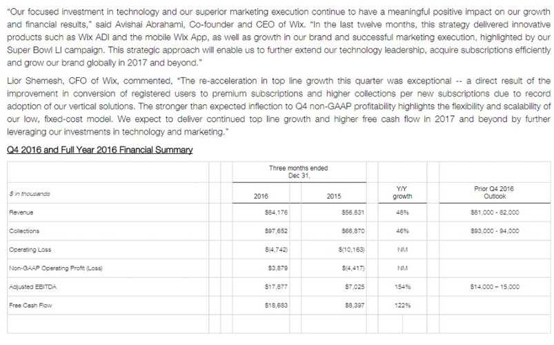 Фрагмент годовой отчетности Wix, торгующегося на NASDAQ
