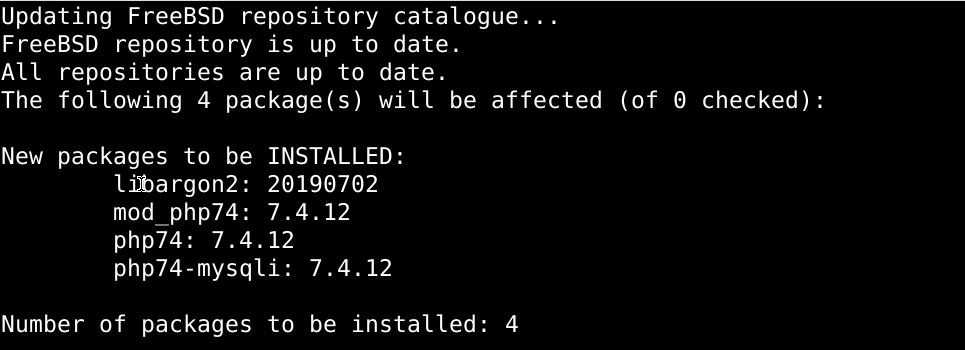 $ sudo pkg install -y php74 php74-mysqli mod_php74
