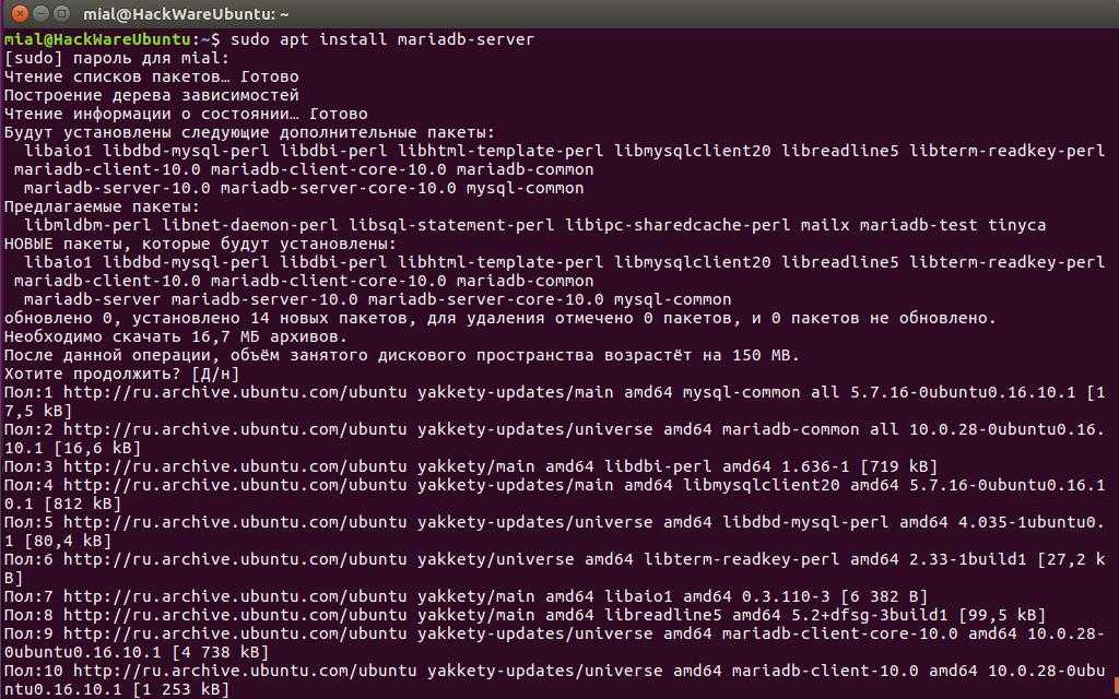 Ещё раз о пароле MariaDB. Это должен быть надёжный и уникальный пароль. Думайте о нём как о пароле входа на ваш сервер. Он должен отличаться от пароля пользователя Linux.