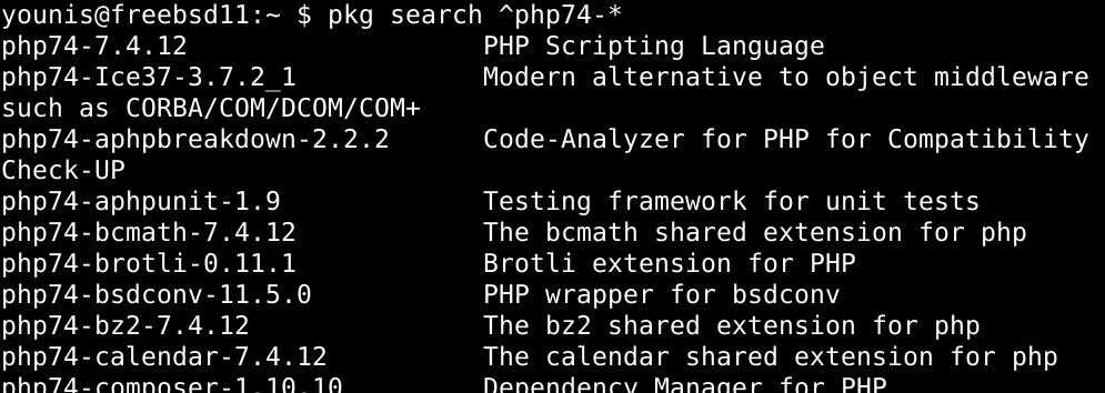 Подобно тому, как мы использовали команду pkg раньше, мы также можем установить PHP из репозиториев FreeBSD.
