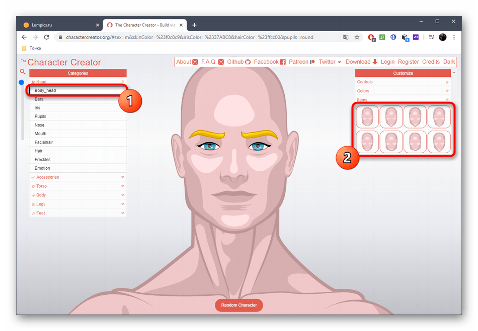 Character Creator — бесплатный инструмент для создания полноценного персонажа, которого можно использовать в дальнейшем для анимирования или добавления в игру. Функциональность этого онлайн-сервиса направлена только на создание лица, что происходит так: