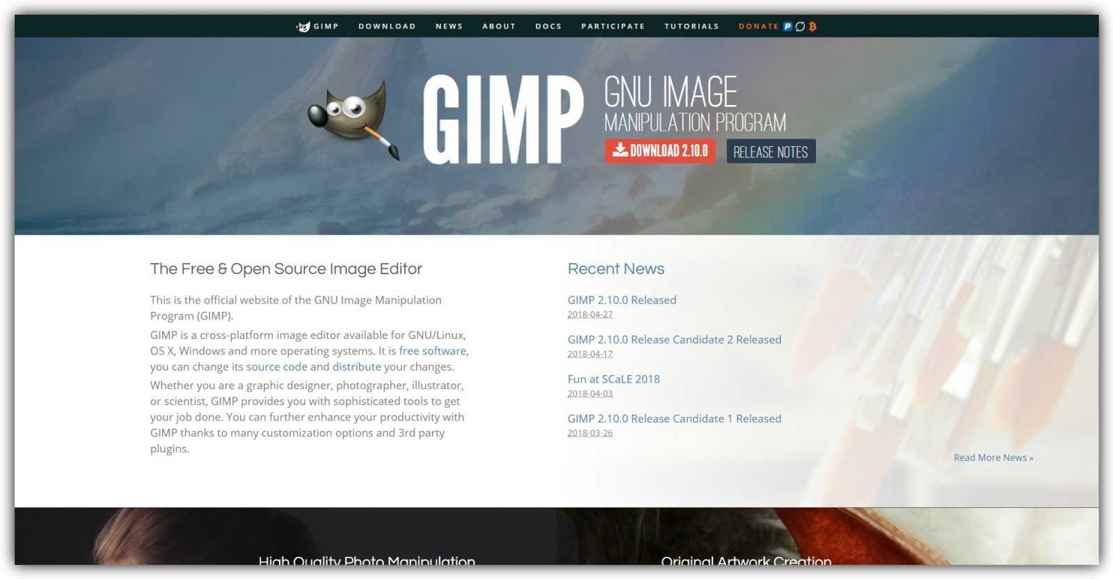 Первый продукт в нашем списке — это GIMP (Гимп). Гимп — это самый мощный и самый известный из бесплатных графических редакторов, к тому же с открытым исходным кодом. В его разработке принимают участие энтузиасты со всего мира. Он может работать в Windows, Mac OS X, Linux, FreeBSD и многих других операционных системах. Для GIMP существует очень много самых различных дополнений.