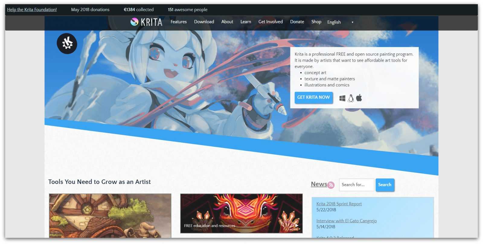 Ещё один редактор с открытым исходным кодом. Krita существует с 1999 года и постоянно совершенствуется, чтобы соответствовать нуждам концепт-художников, иллюстраторов, специалистов по визуальным эффектам, дорисовке и текстурам.