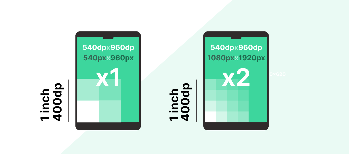 Из двух устройств с одинаковыми физическими размерами экрана одно может иметь в четыре раза больше пикселей.
